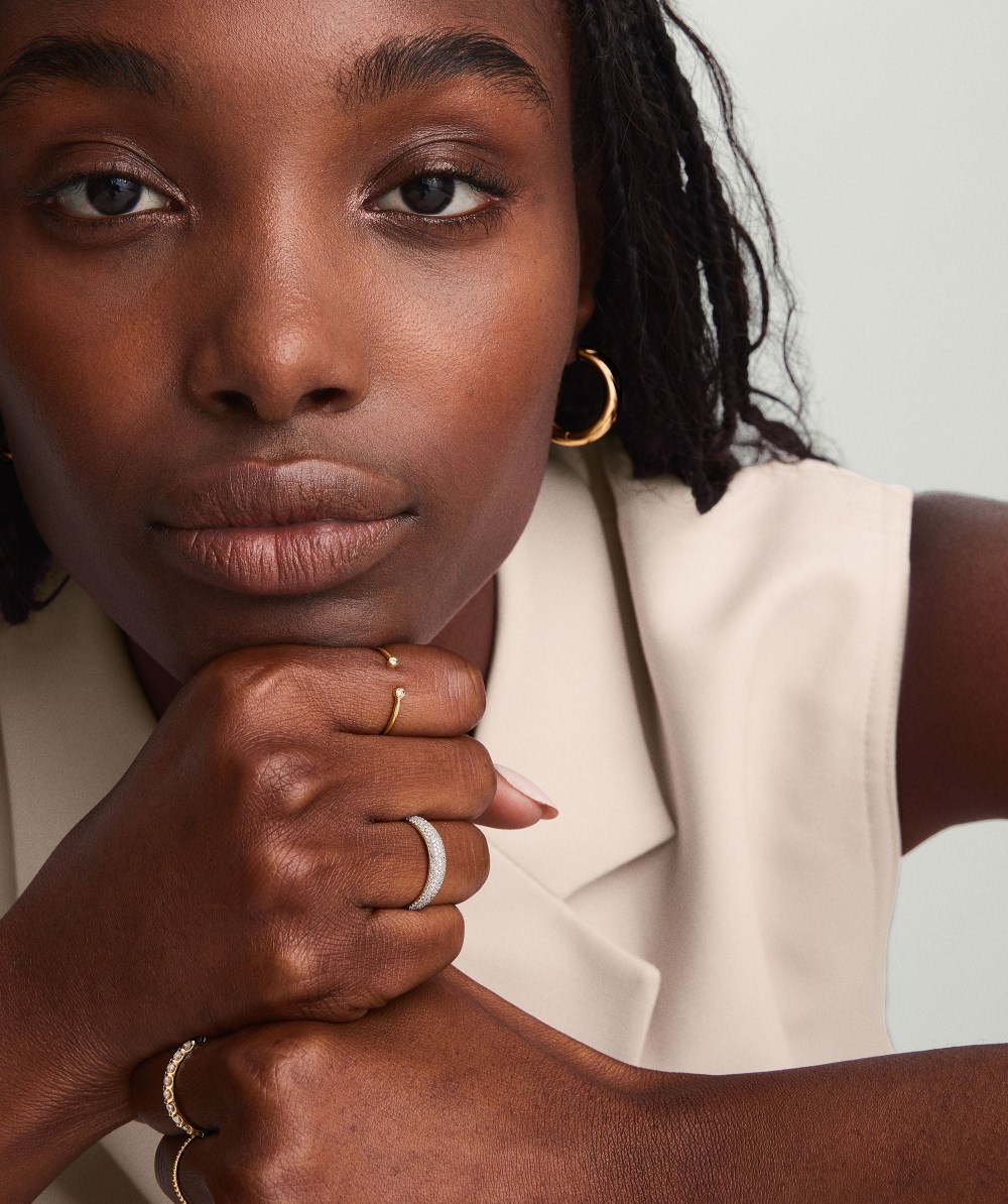 Two is better than one. With a bezel setting these 0.03 carat responsibly sourced diamonds dance. The open design makes this ring stand out even when stacked with friends, like the Stacker, Twist or Beaded Rings.When properly cared for, our 14k gold pieces can last forever. With its beautiful, subtle hue, you can wear your jewelry every day, everywhere.