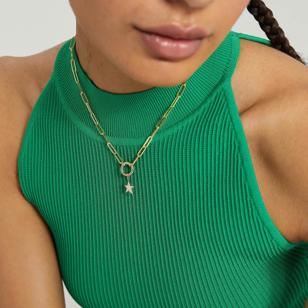 The nostalgia intensifies. Tell your story with this bold chain and our new Stacker Clasp—a link that can layer three of your favorite charms together. Pick the ones that mean the most to you and relive your charm necklace era. Plus, this versatile style was designed to be worn two ways—flip the clasp to the back and style this as a classic paperclip chain. Handcrafted in 14k recycled solid gold.When properly cared for, our 14k gold pieces can last forever. With its beautiful, subtle hue, you can wear your jewelry every day, everywhere.