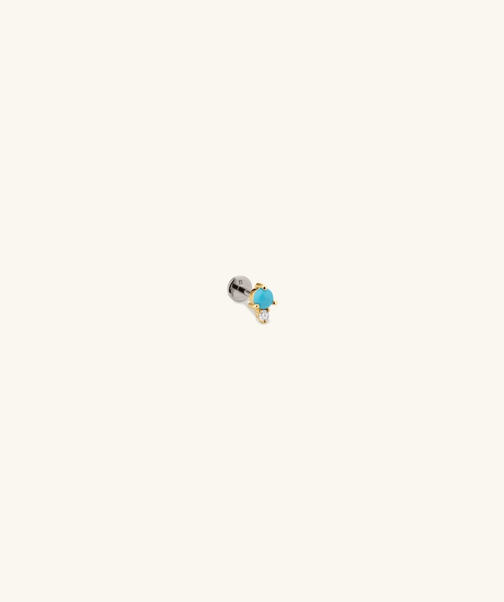 - Average Carat Weight: 0.014 ct- Diamond Size: 1.5 mm- Diamond Clarity: SI - I - Diamond Color: GHI- Turquoise Size: 3 mm- Width: 3.85 mm