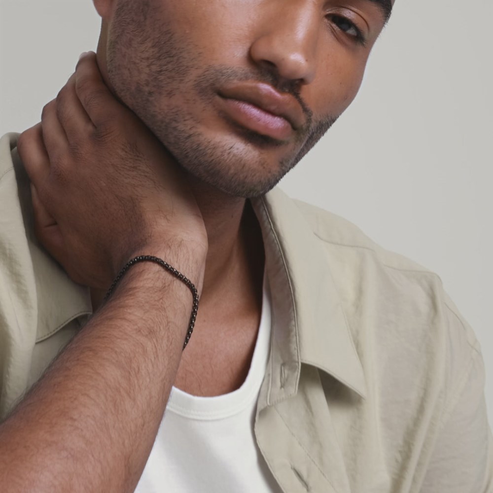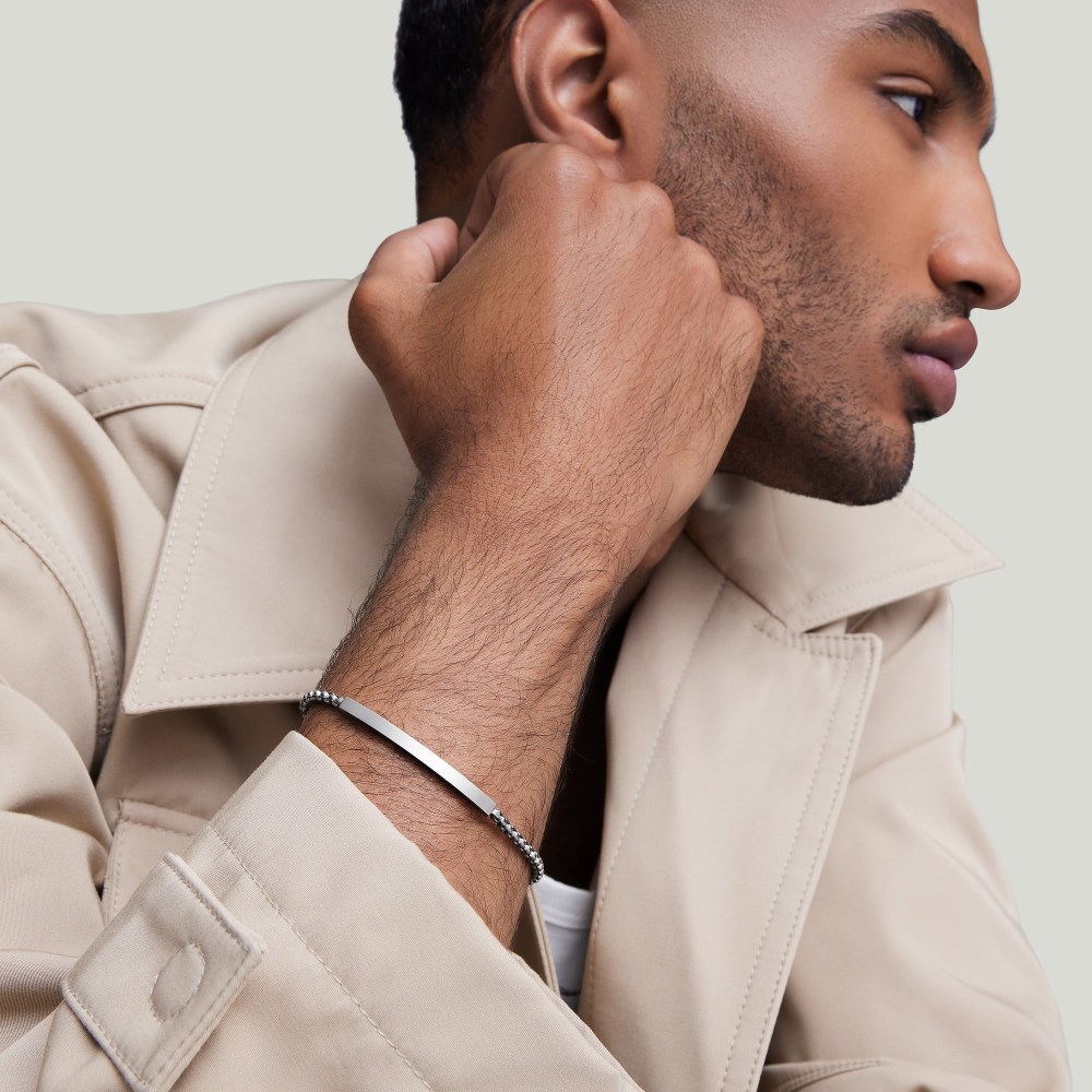 Is there something you’d like to share? Say it with your wrist. Handcrafted in titanium featuring a rounded box chain and center-aligned engraving.Titanium is our strongest material—it’s lightweight and resistant to the elements and daily wear. When properly cared for, titanium will maintain its appearance for a lifetime.Titanium is not completely scratch-proof. While it resists wear better than many materials, everyday use can still leave subtle marks. Factors like friction, impact, or exposure to harder surfaces can cause fine scratches, which may be more visible on black titanium.